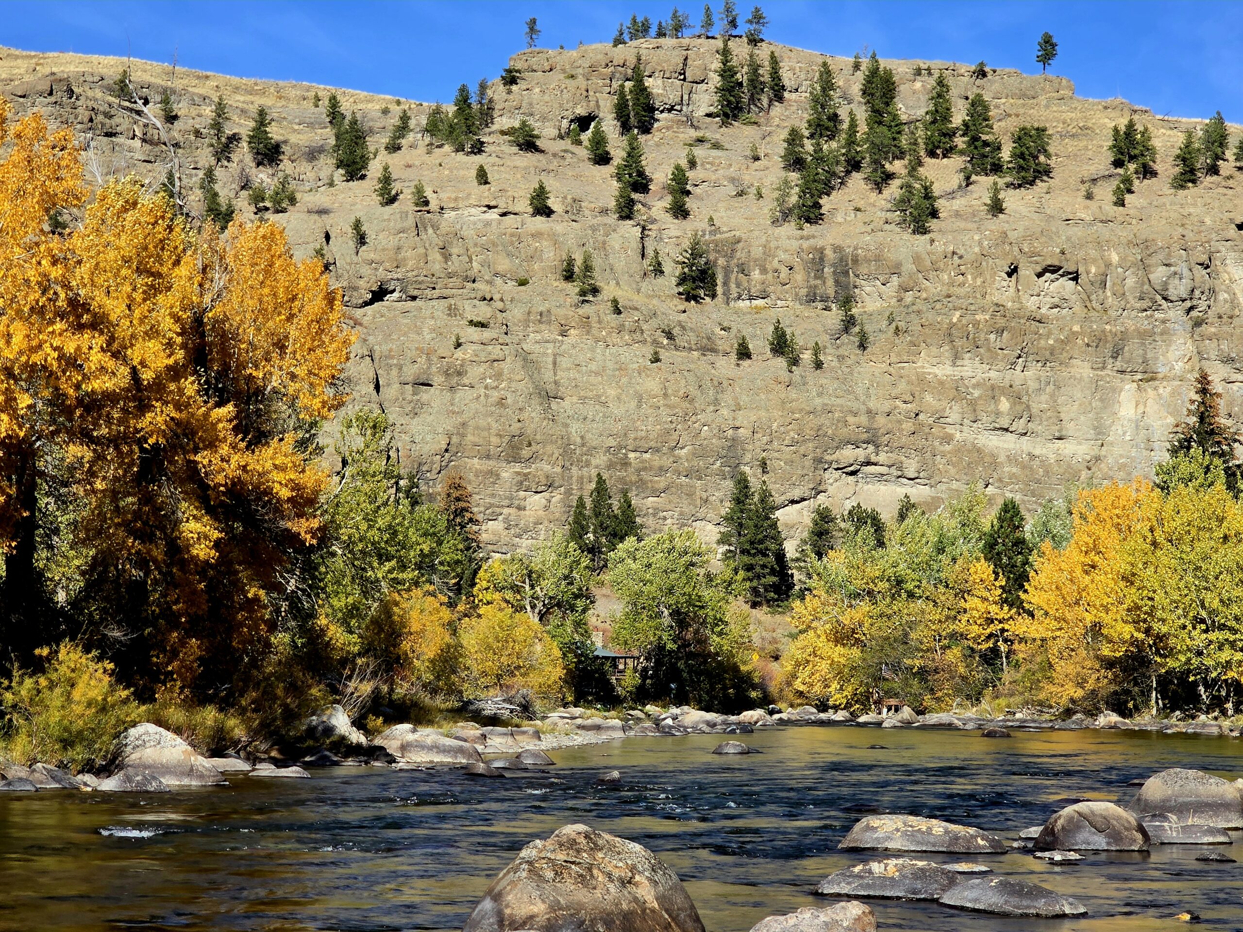 Nestled amongst towering rock spires on the edge of the Stillwater River near Nye, Montana, this attractive, well-maintained property is a true fly-fishing haven. Remodeled in 2015, the cozy log accent cabin has a spacious open plan interior design with a bright kitchen/living room area, two bedrooms and one bathroom. A huge wrap around deck overlooking the river provides ideal outdoor living space. This is the perfect spot to enjoy early morning coffee or evening sundowners whilst taking in all the sights and sounds of the gorgeous riverfront setting where there is constant movement and life. Just steps away from the cabin, the deep pools and long runs of the Stillwater offer outstanding dry fly fishing for plump wild trout. With its prime location and a host of appealing features, this premier listing is an excellent choice for a fishing retreat, family vacation home or income property. This Cabin is on VRBO, and has a good following for returned clientele.