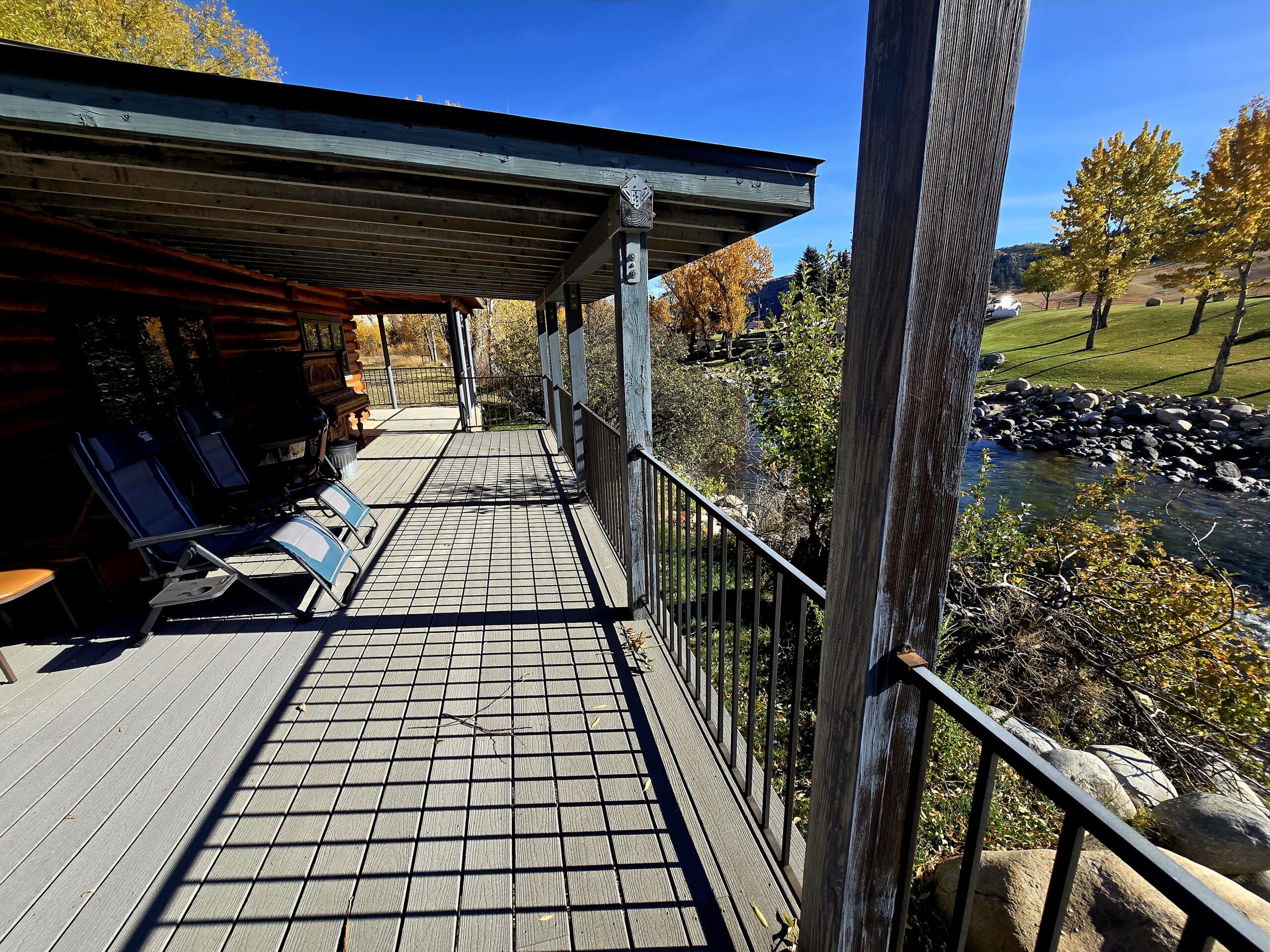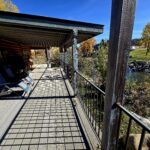 Spacious wrap-around composite deck overlooking river.